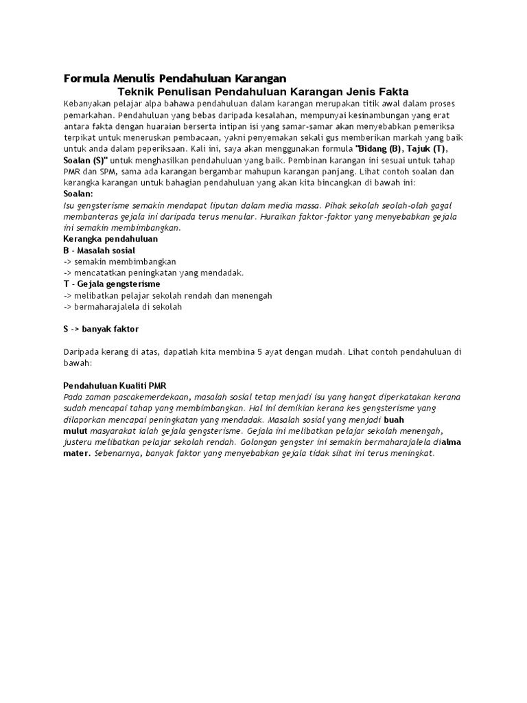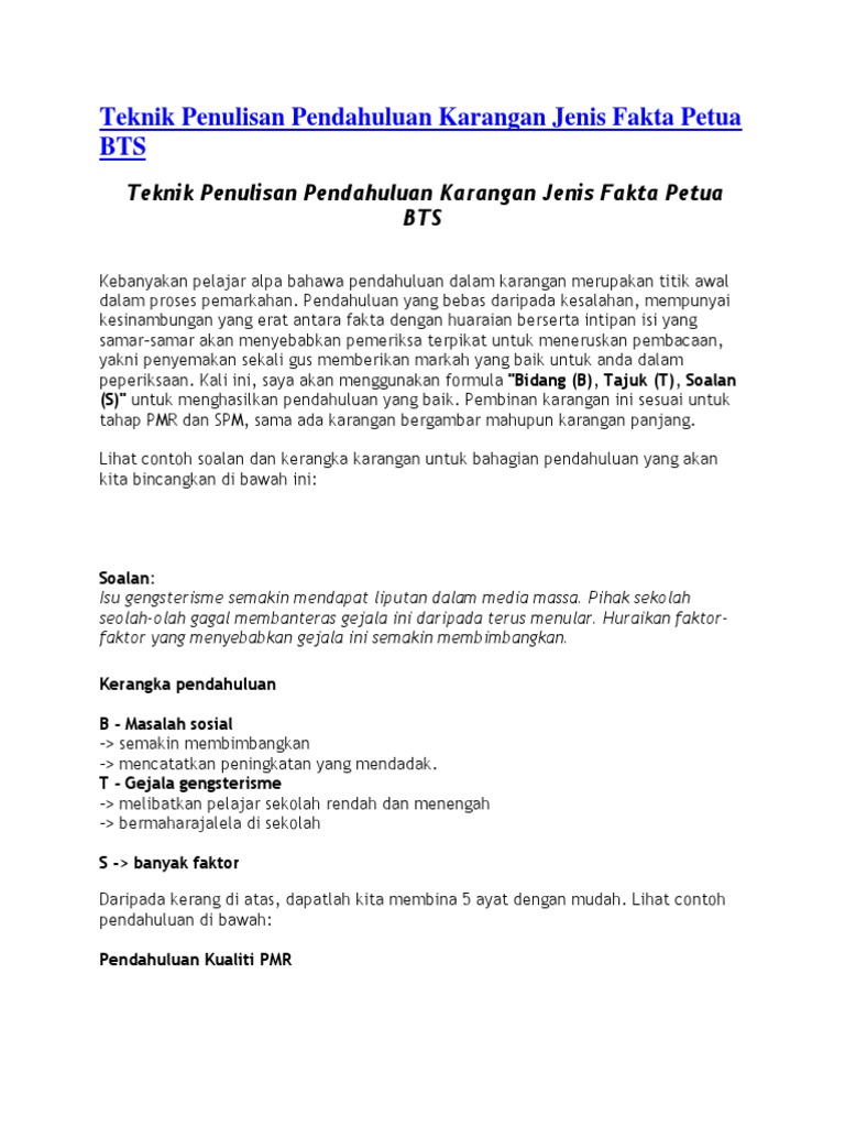 Teknik Penulisan Pendahuluan Karangan Jenis Fakta Petua Bts Pdf